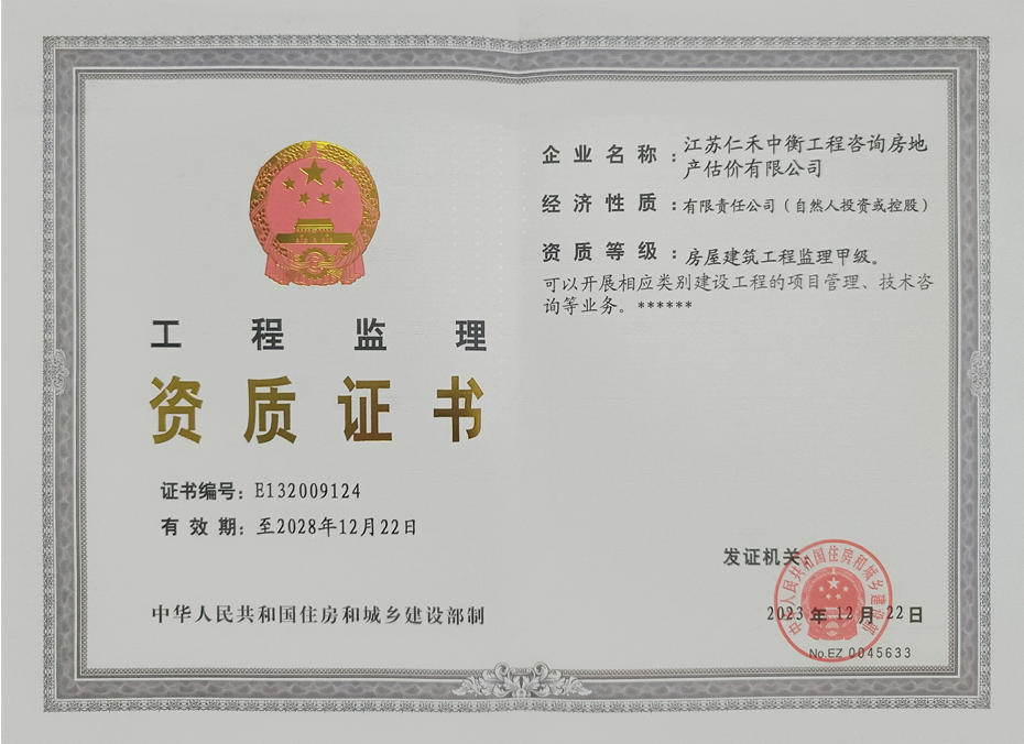 • 房屋建筑監理甲級證書